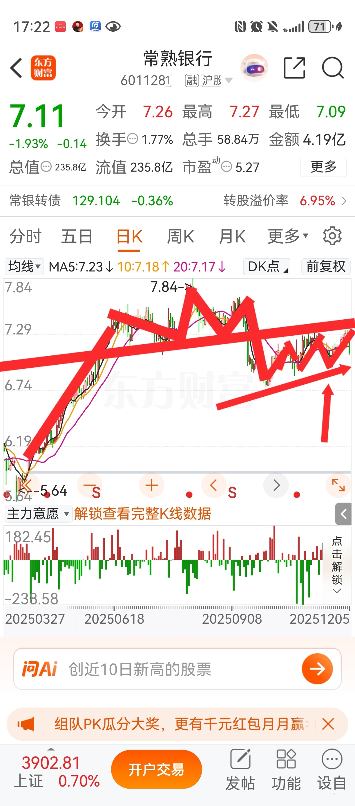 如果,跌破趋势,就去考验前低,收不回,就要到6.5。没办法,趋势形成,想要改变就