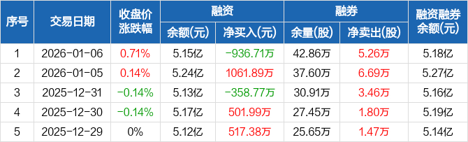 常熟银行:融资净偿还936.71万元,融资余额5.15亿元(01-06)