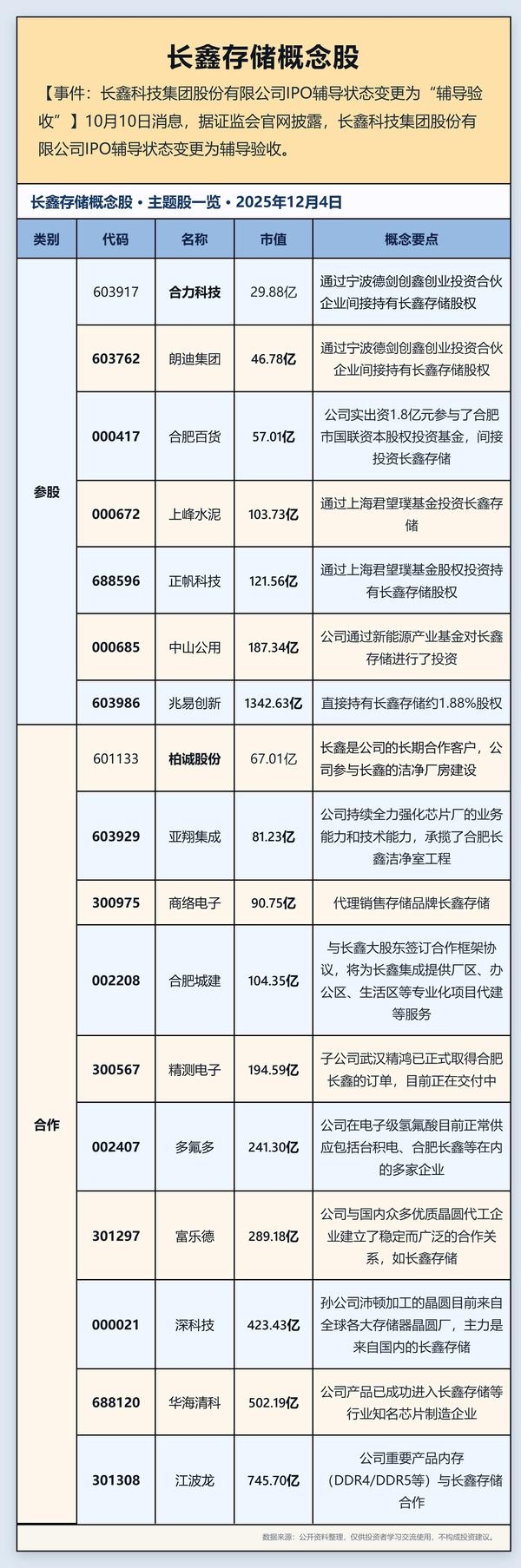证监会受理长鑫科技IPO,参股与合作链条受益股梳理。