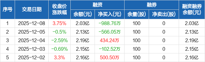 柏诚股份:融资净偿还988.76万元,融资余额2.03亿元(12-08)