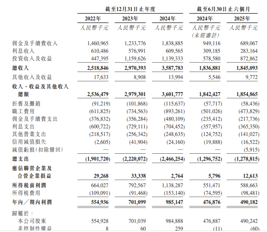 业绩方面,2022年、2023年、2024年和2025年上半年,首创证券的营业收入分别为25.19亿、29.70亿、35.88亿和18.45亿元,相应的净利润分别为5.55亿、7.01亿、9.85亿和4.90亿元。