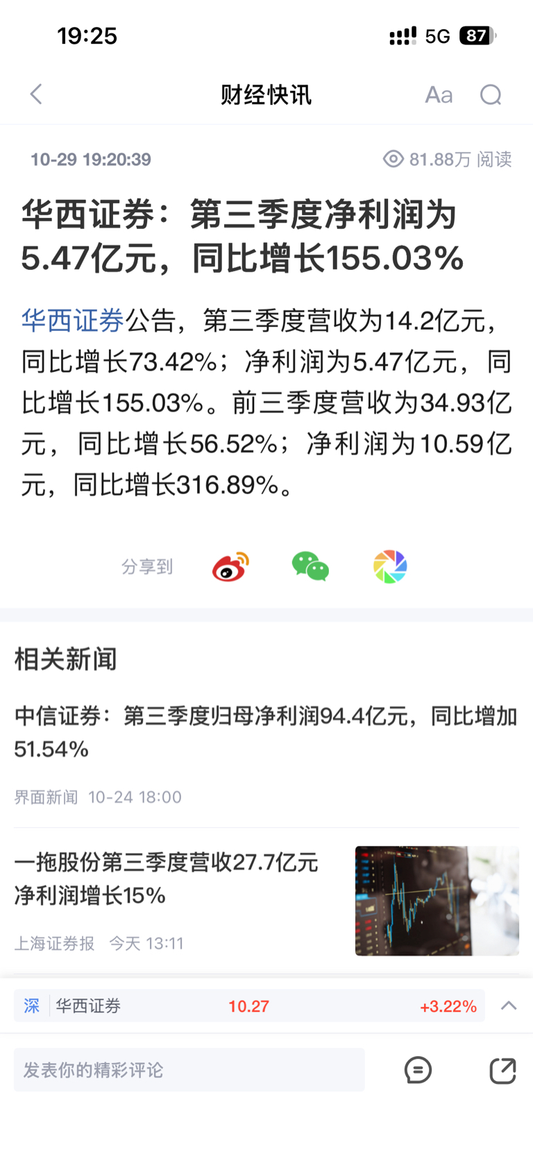 $首创证券(SH601136)$ 华西的是市值260亿,前三季度也赚10亿,哈哈哈,首创至少往下跌一半吧
