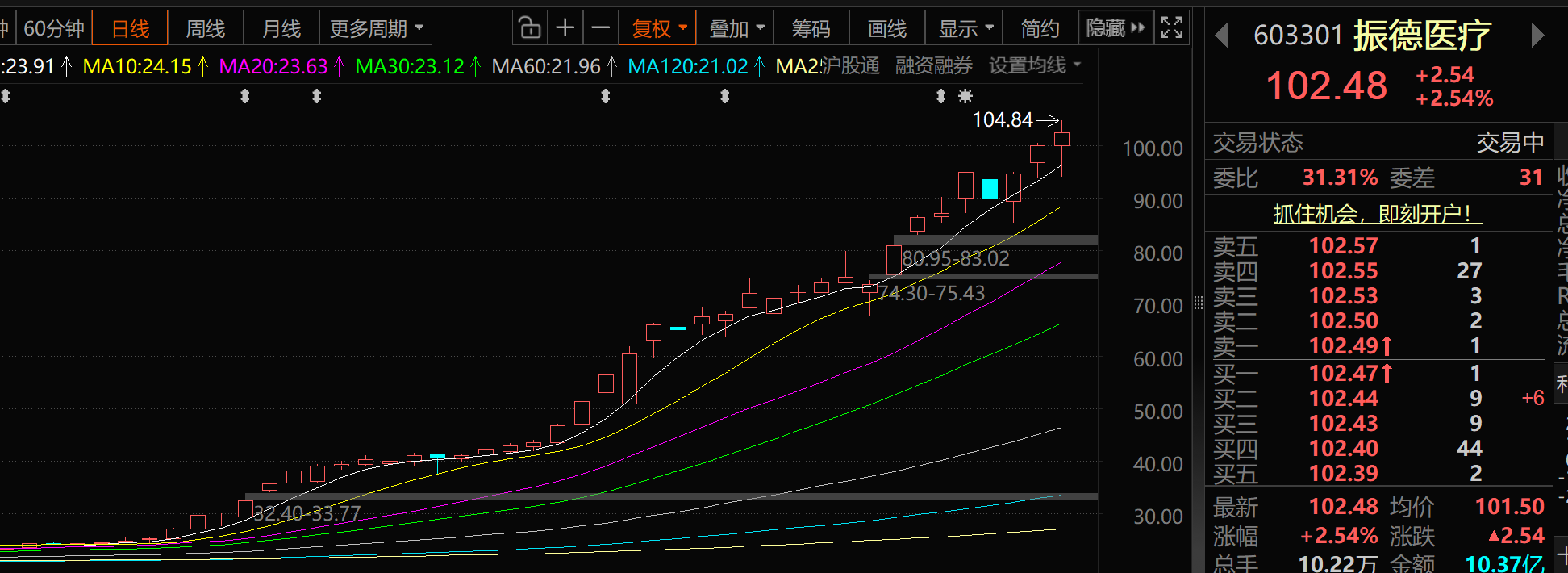 今年除了科技股起飞,其他板块也跟着起飞,振德医疗3个月5倍,今年涨幅是绿的,-6