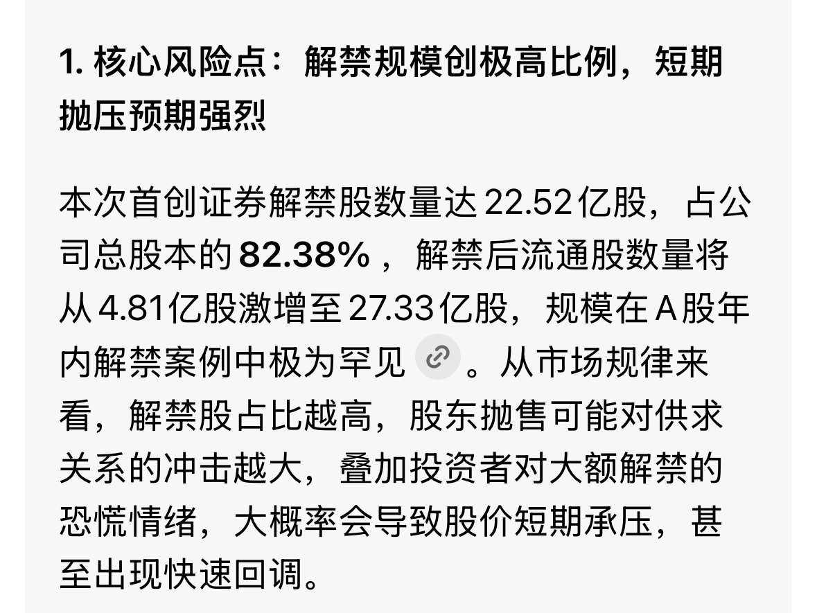 $XD首创证(SH601136)$ 下午资金全跑了,解禁就准备减持,解禁数量空前绝后。