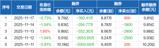 博威合金:连续5日融资净偿还累计5896.9万元(11-17)
