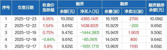 博威合金:融资净买入4365.14万元,融资余额10.05亿元(12-23)