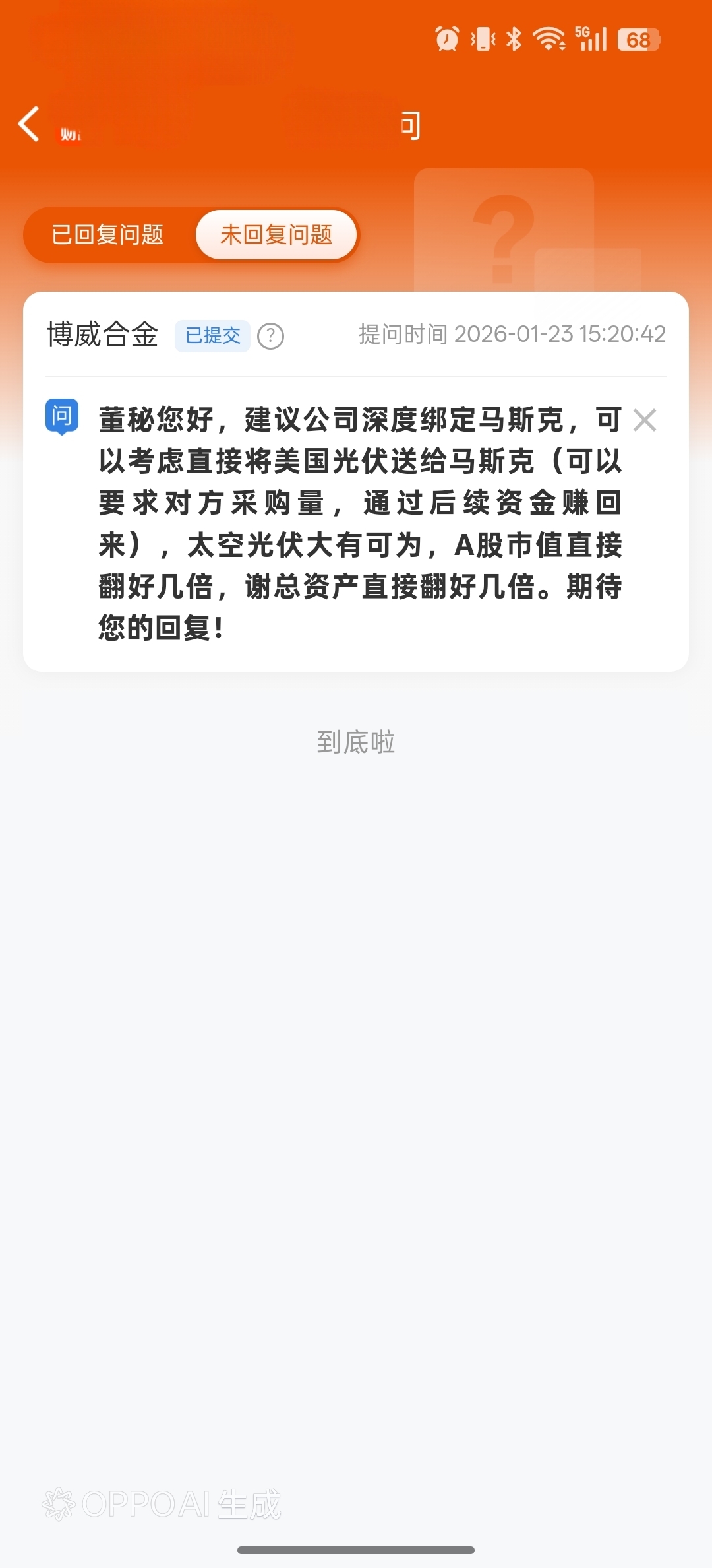 $博威合金(SH601137)$ 已经建议董秘了,光伏直接送马斯克。大家一起去建议吧。哈哈哈哈