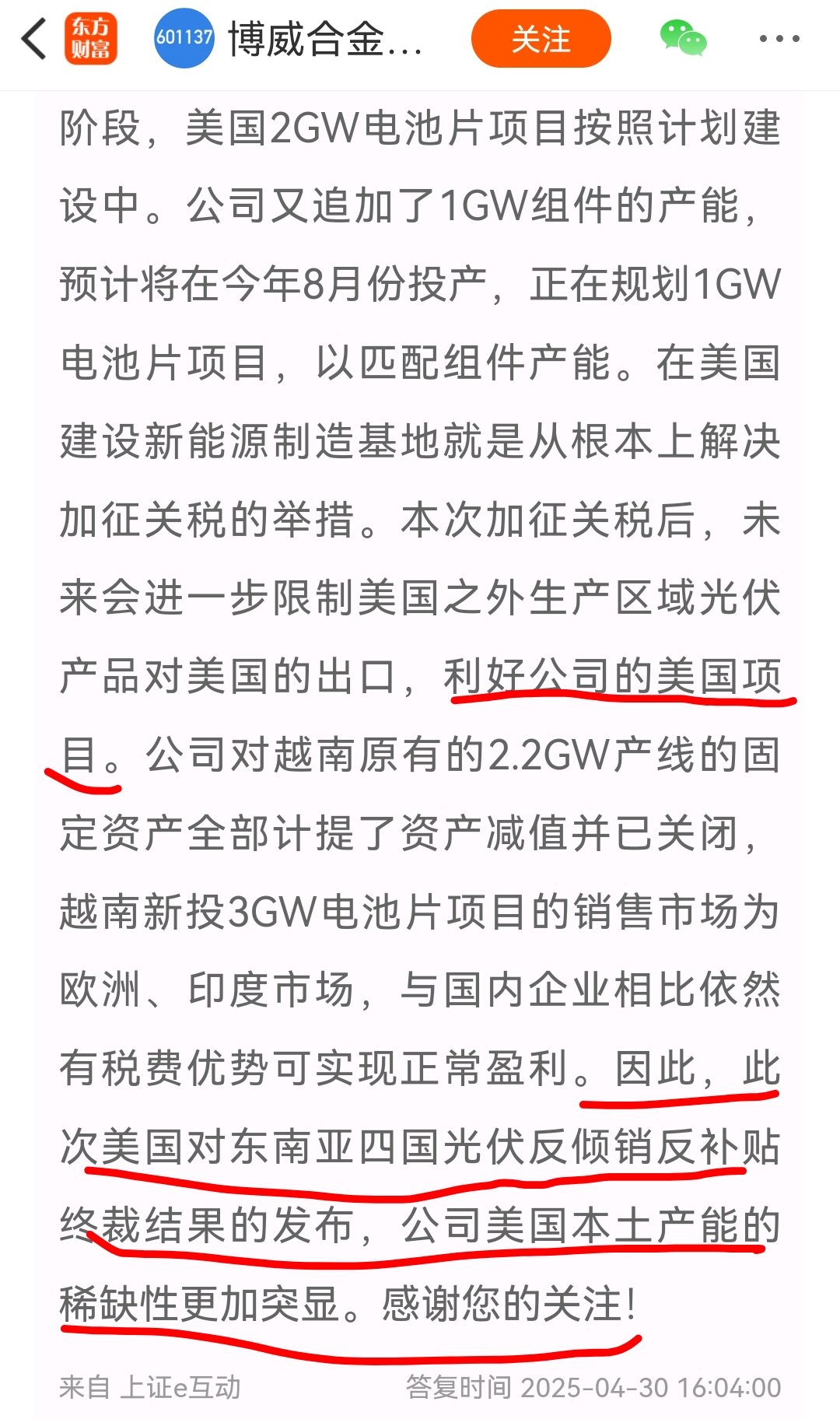 $博威合金(SH601137)$ 我记得董秘说美加税是利好