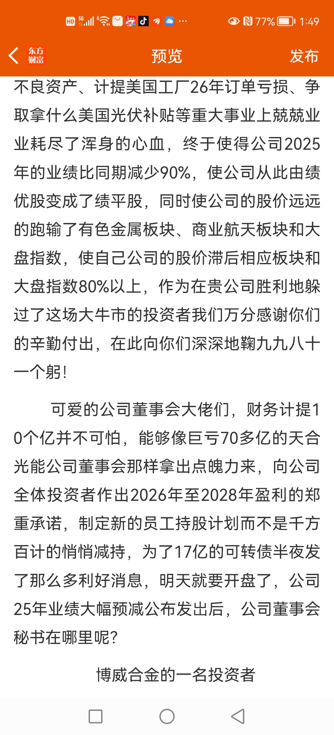 温馨提示: 1.根据《证券法》规定,禁止编造、传播虚假信息或者误导性信息,扰乱证券市场;2.用户在本社区发表的所有资料、言论等仅代表个人观点,与本网站立场无关,不对您构成任何投资建议。用户应基于自己的独立判断,自行决定证券投资并承担相应风险。《东方财富社区管理规定》