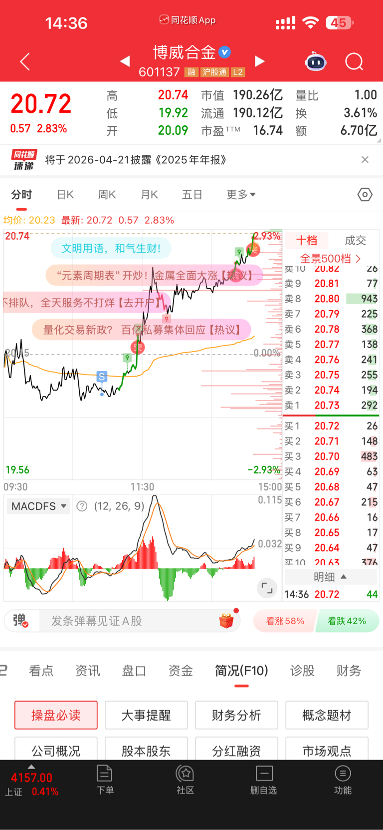 $博威合金(SH601137)$ 就等我卖了才拉升?