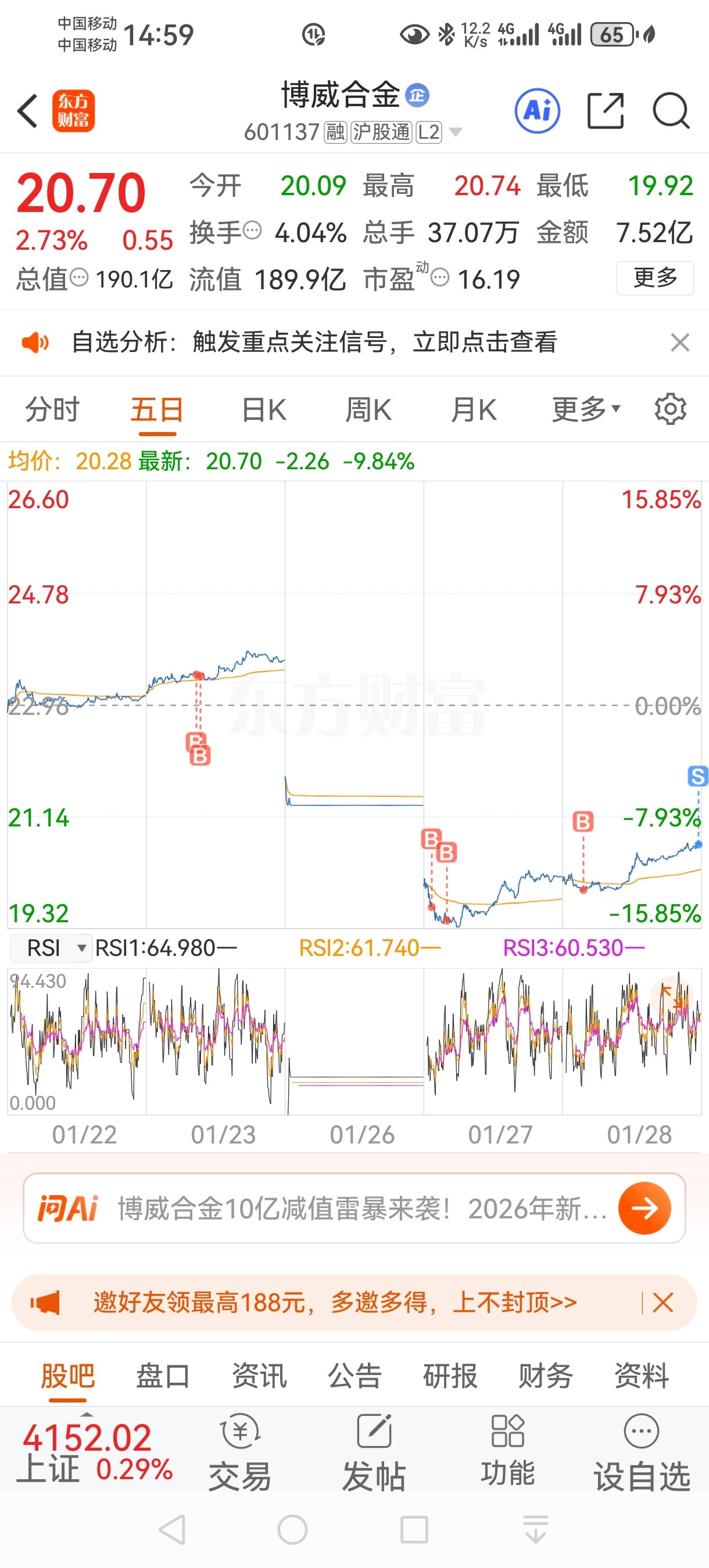 $博威合金(SH601137)$ 留点底仓,希望杂毛明天能涨让兄弟们开心过个年