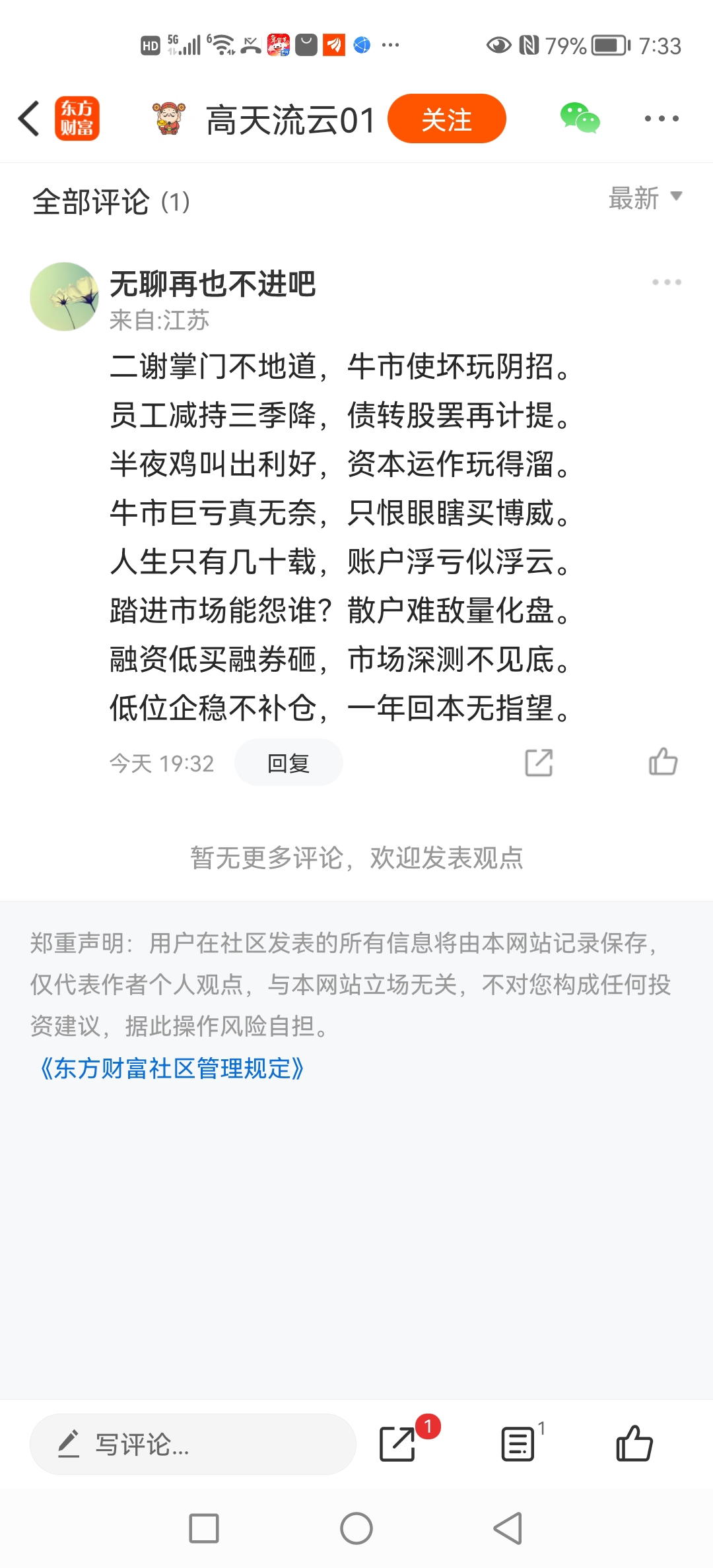 温馨提示: 1.根据《证券法》规定,禁止编造、传播虚假信息或者误导性信息,扰乱证券市场;2.用户在本社区发表的所有资料、言论等仅代表个人观点,与本网站立场无关,不对您构成任何投资建议。用户应基于自己的独立判断,自行决定证券投资并承担相应风险。《东方财富社区管理规定》