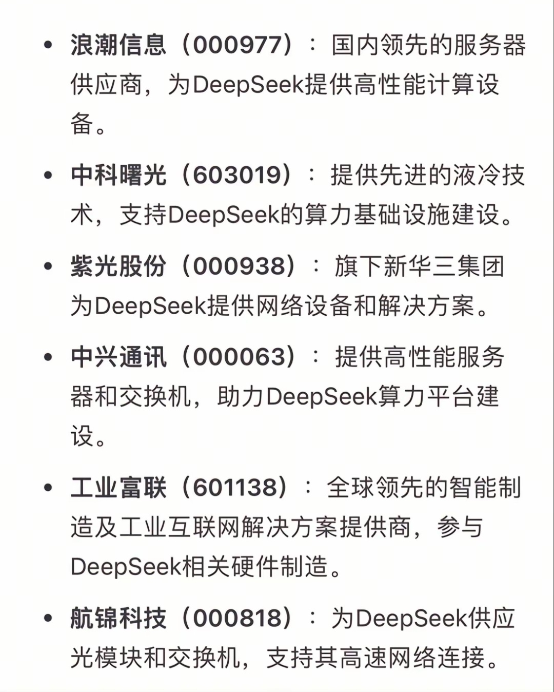 $工业富联(SH601138)$ Deepseek火爆,相关核心公司介绍: