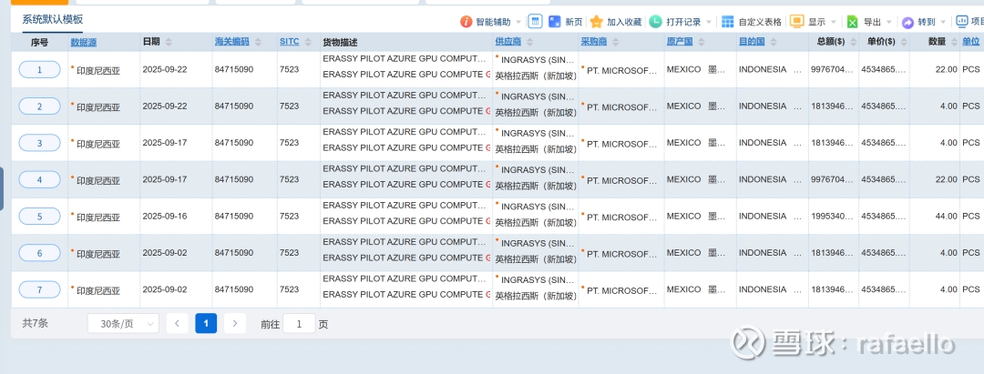 $工业富联(SH601138)$ 印尼进口数据,微软在9月份收到了来自鸿海的104套GB300整机,进度超预期