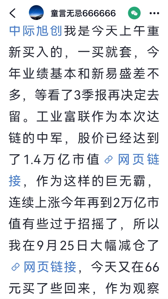 今天10月份首个交易日,开门黑!$中际旭创(SZ300308)$ 高开低走第二天跌破20日多头生命线,按原则在404.88元止损出局;工业富联在68.88元止盈离场;47.44元和46.4元新建仓半导体封测龙头$长电科技(SH600584)$ (计划买入的通富微电一字板买不到);第一次14.75元尝试买入港股$微创医疗(00853)$ 练练手。