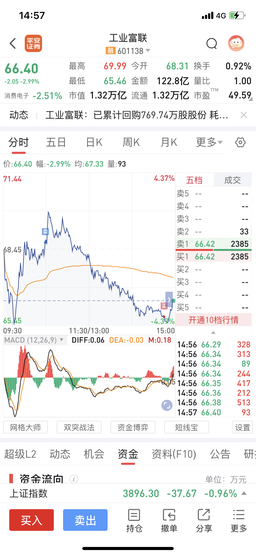 $工业富联(SH601138)$ 虽然卖不在最高点,但也是极其舒适,大盘下跌也能赚几个点