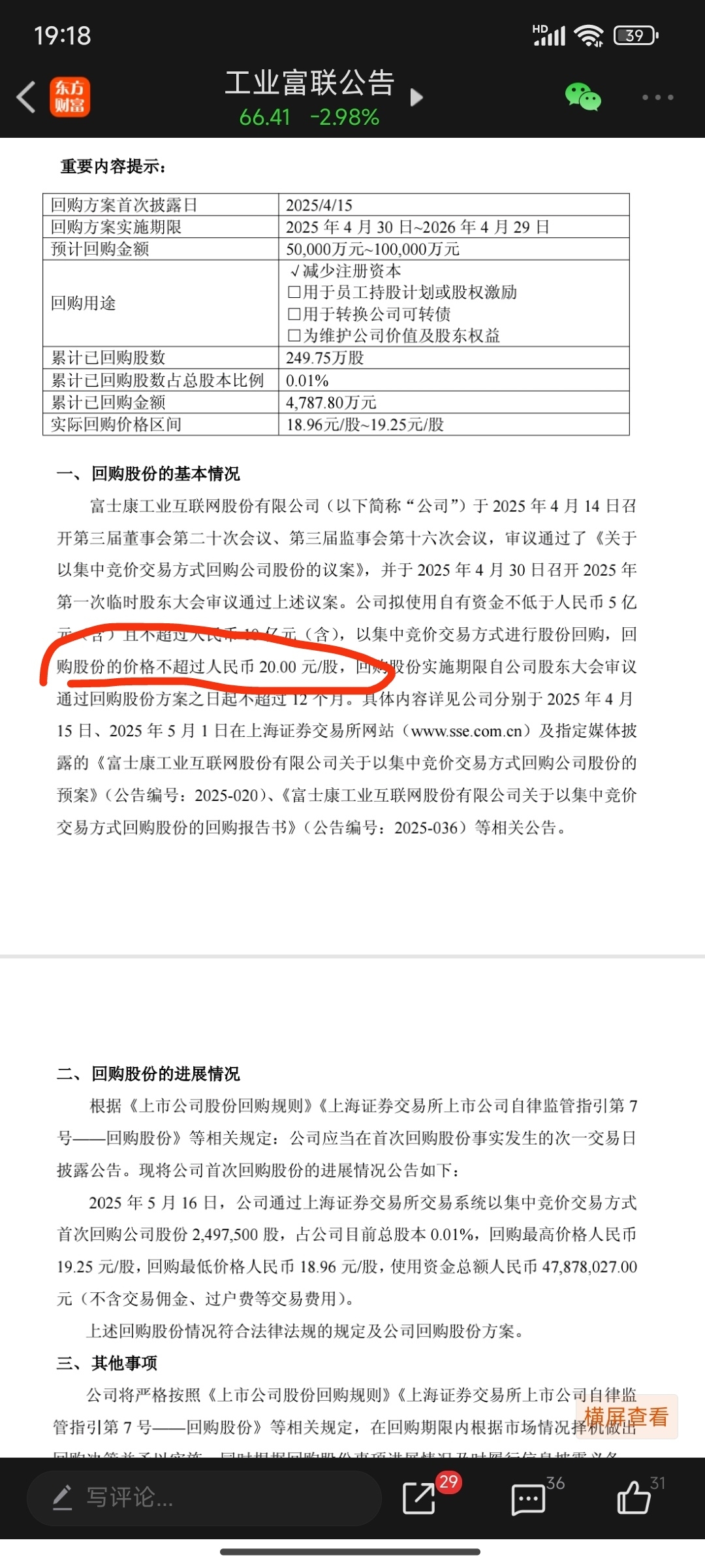 公司高于20元不回购。这一波跌破20元就没必要惊慌了。