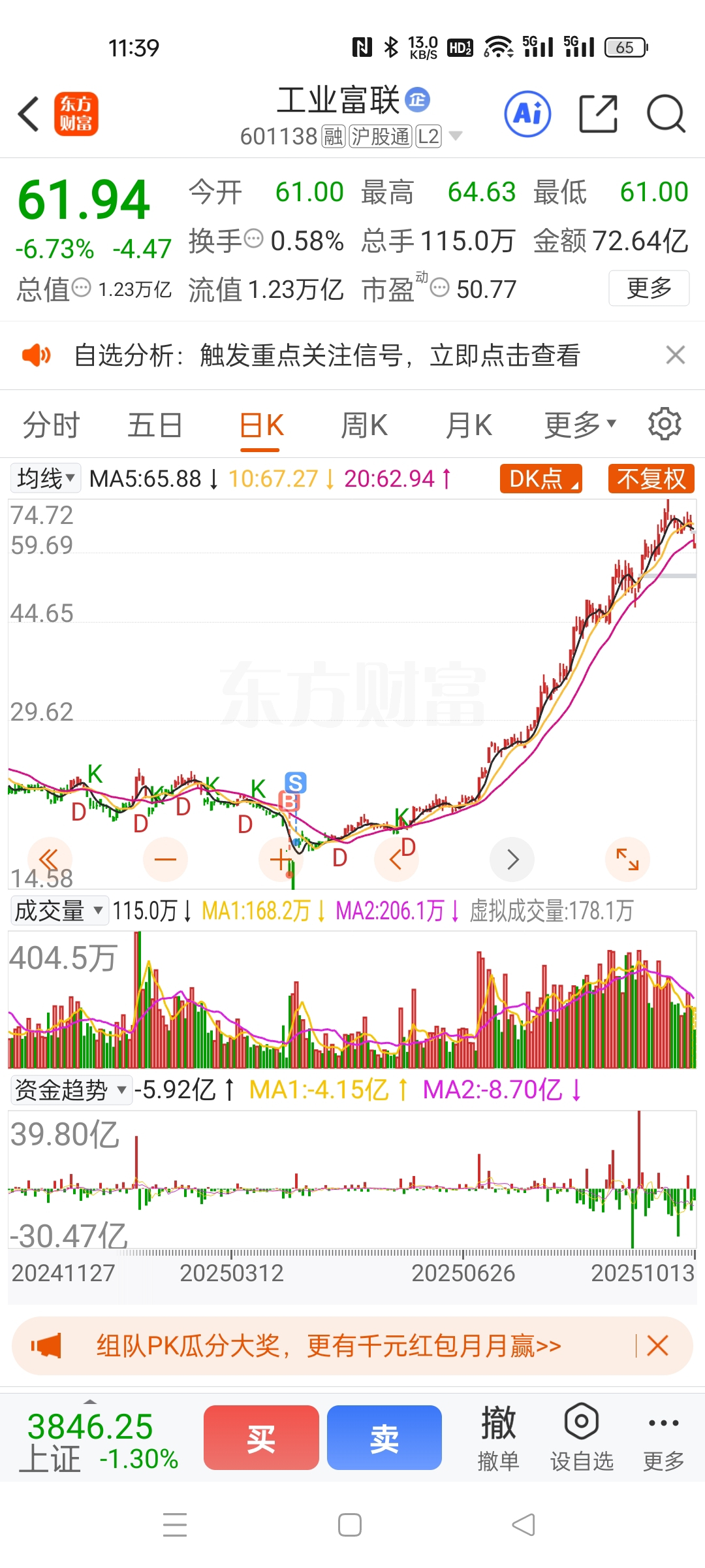 $工业富联(SH601138)$ 从上市就看,钱少,否则就做长期