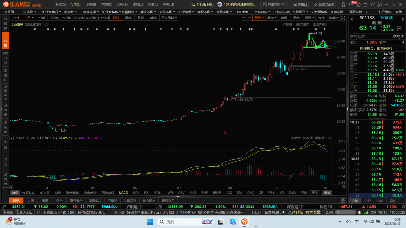 $工业富联(SH601138)$ 出顶了,哎,完了蛋