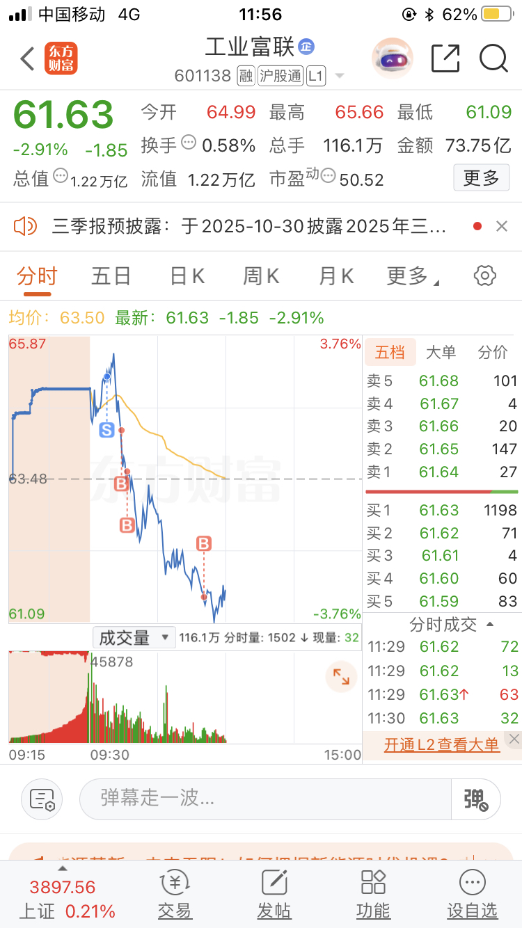$工业富联(SH601138)$ 每天都做做T,慢慢的把成本打下来