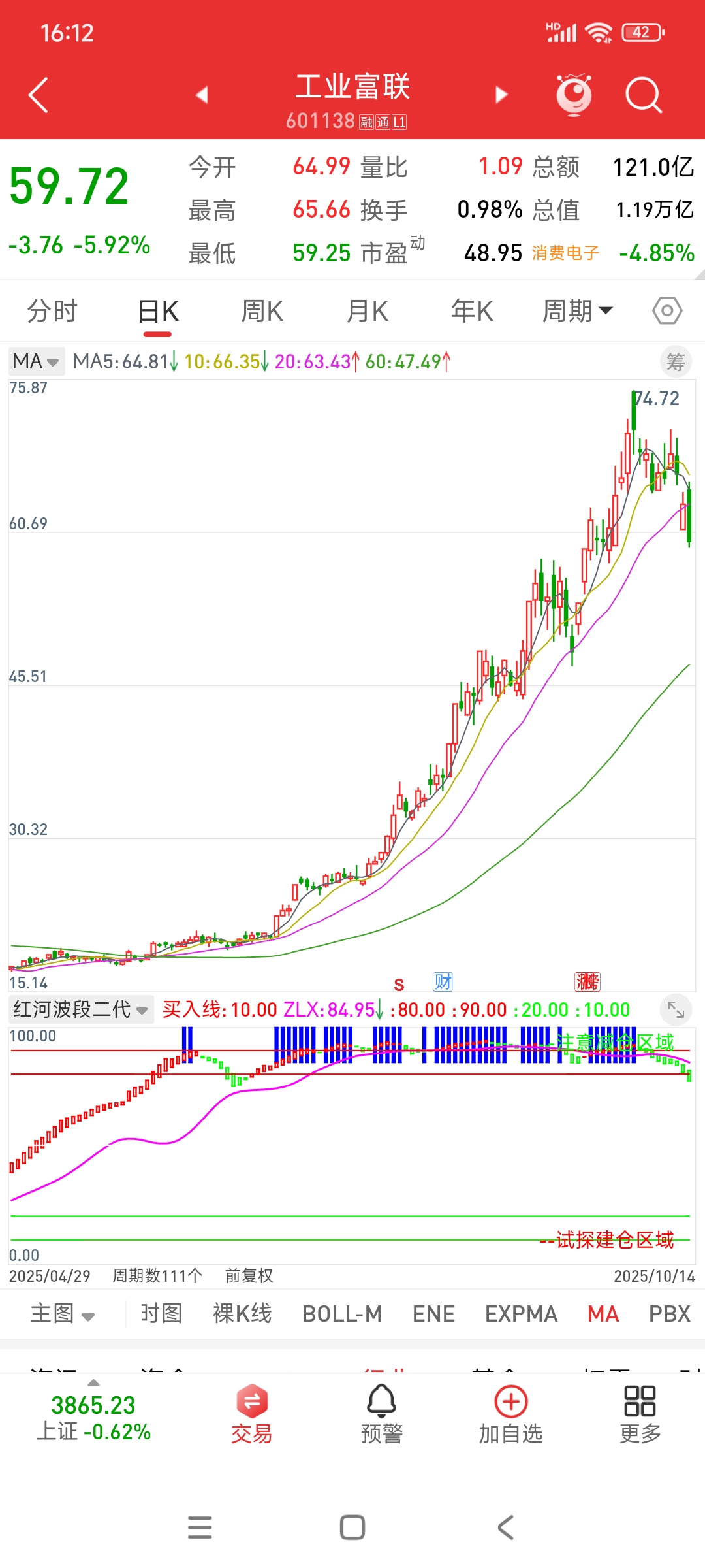 $工业富联(SH601138)$ 昨天已经告诉你们要注意风险了,因为绿柱一路延续的,日线绿柱延续,周线顶部红柱转绿柱,没有看涨的理由,毕竟绿柱不停,下行不止,绿柱拉长,崩溃不止,继续