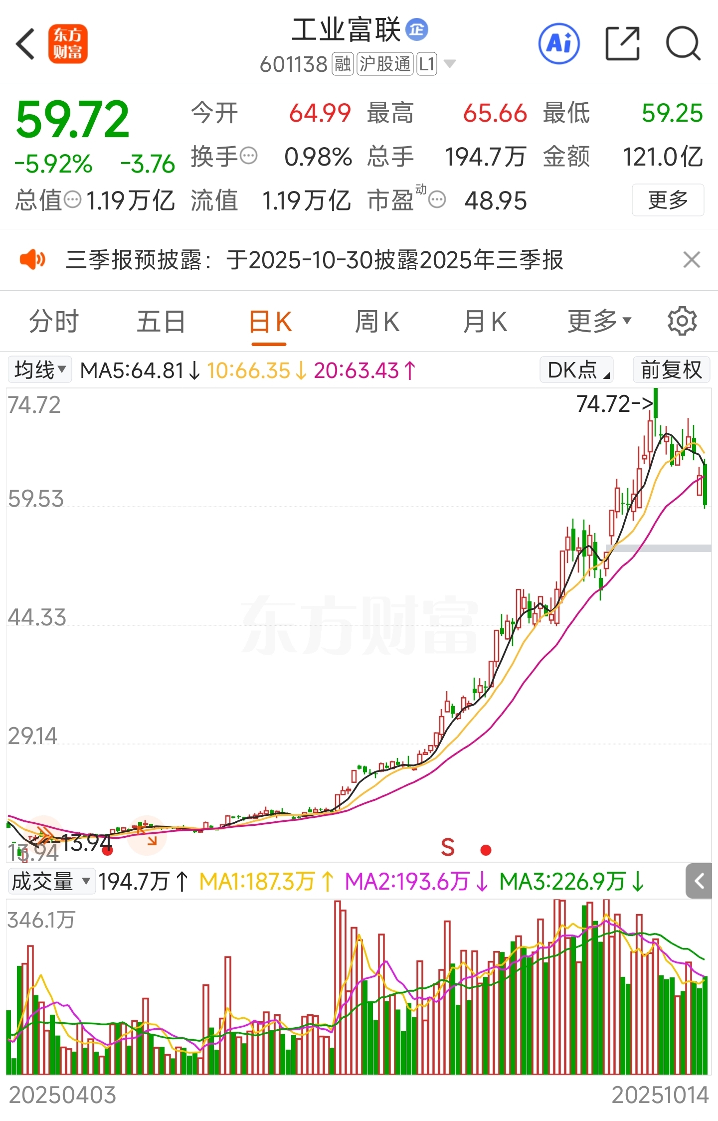 半年左右,从13块多,干到了70多,涨了近五倍。也该消停了!获利盘出局,接盘的割