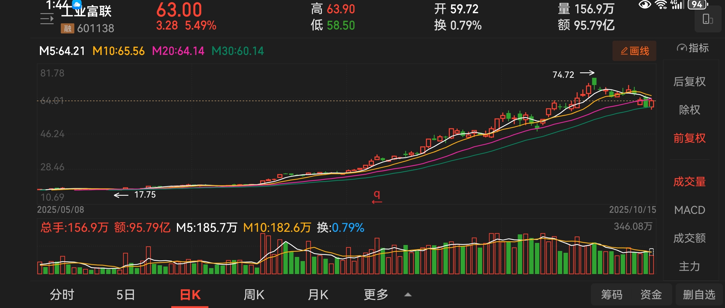 $工业富联(SH601138)$ 跟着主力做一波反弹,看涨