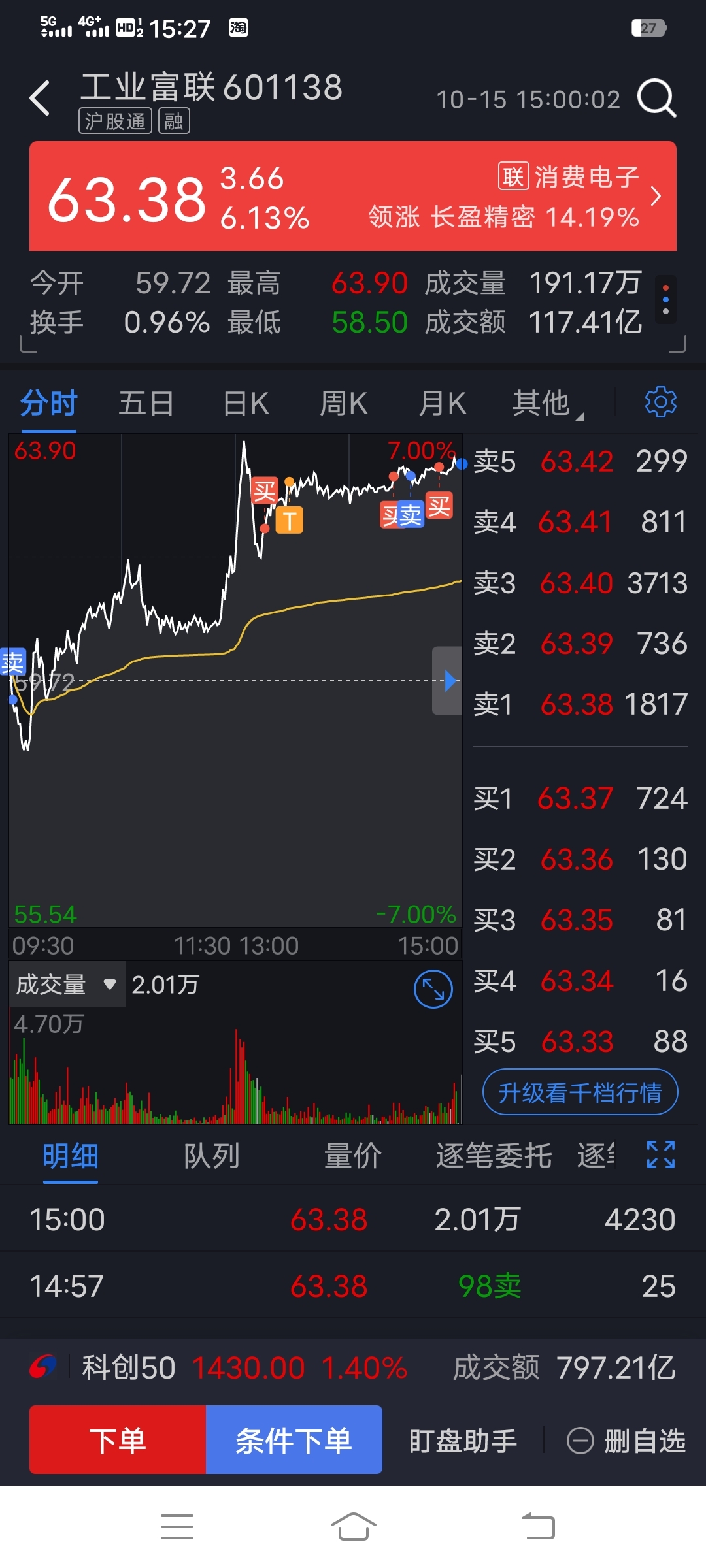 $工业富联(SH601138)$ 复联我真不会玩了,成本价69玩到了73,