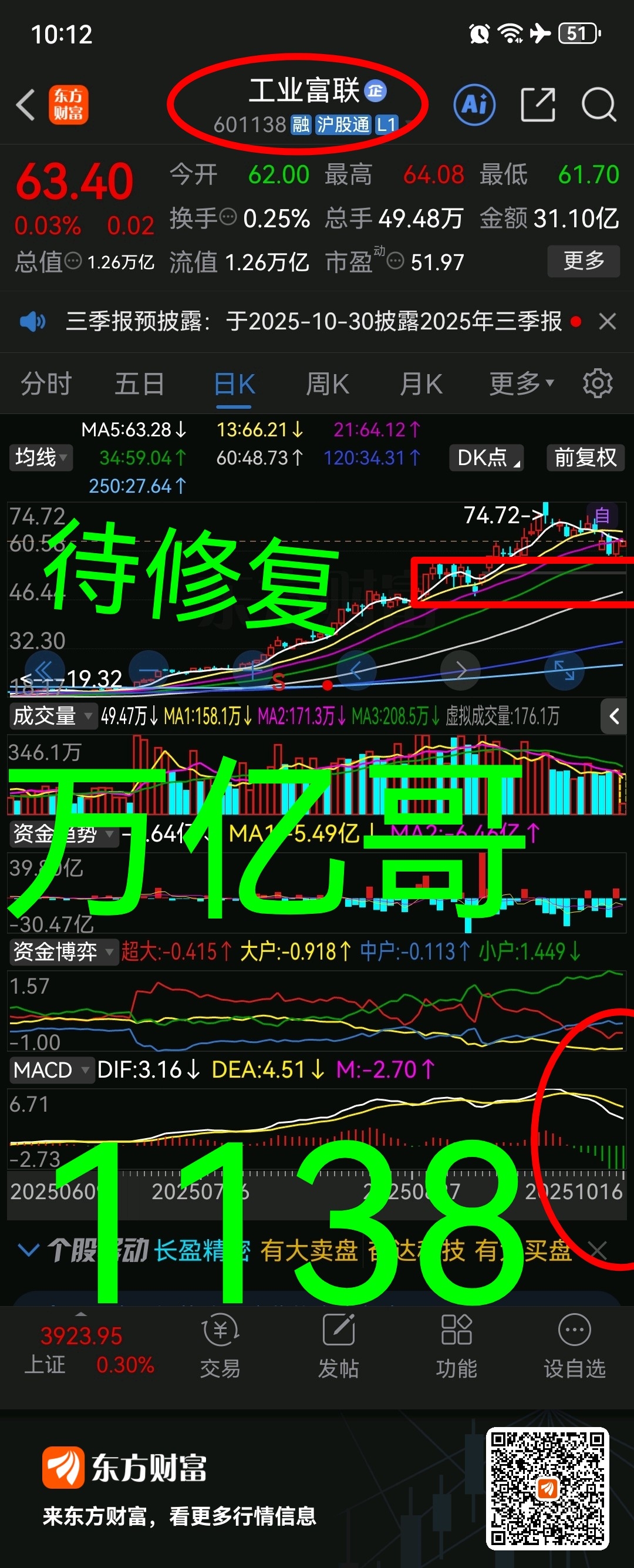 连续回撤按预期破60元(万亿哥)601138工业富联连续两日修复但结构修复并不完