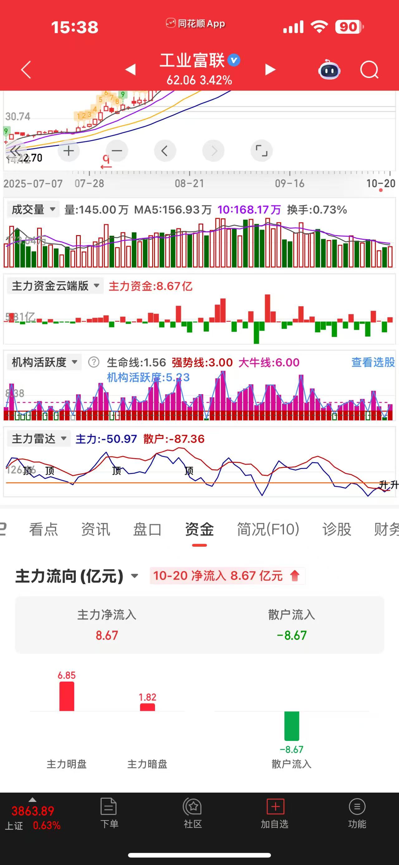 明天涨停,我说的,今天主力净流入8.67亿,明盘6.85亿,暗盘1.82亿。明天妇联将带领大盘突破3900点。
