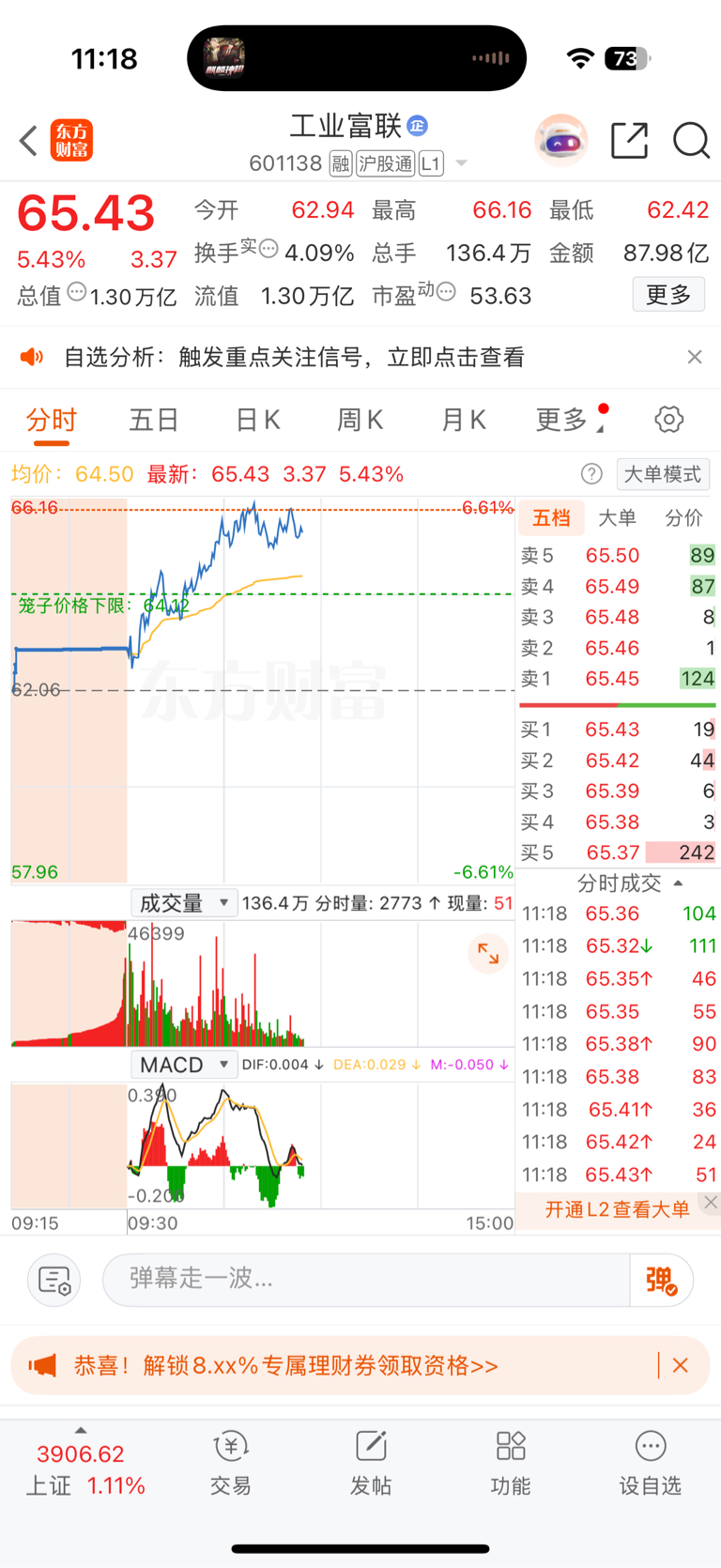 就到我成本线,我买的也不多主力还能看得上?