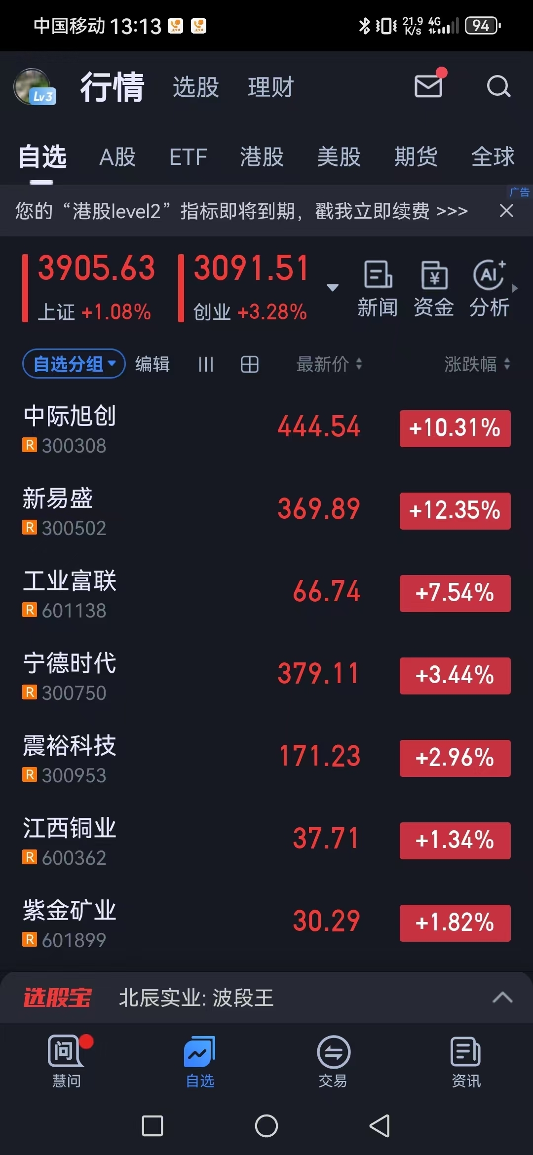 353给大家上周推荐的大牛股中鸡旭创,现价450元,如果不能够涨停的话,短线客还
