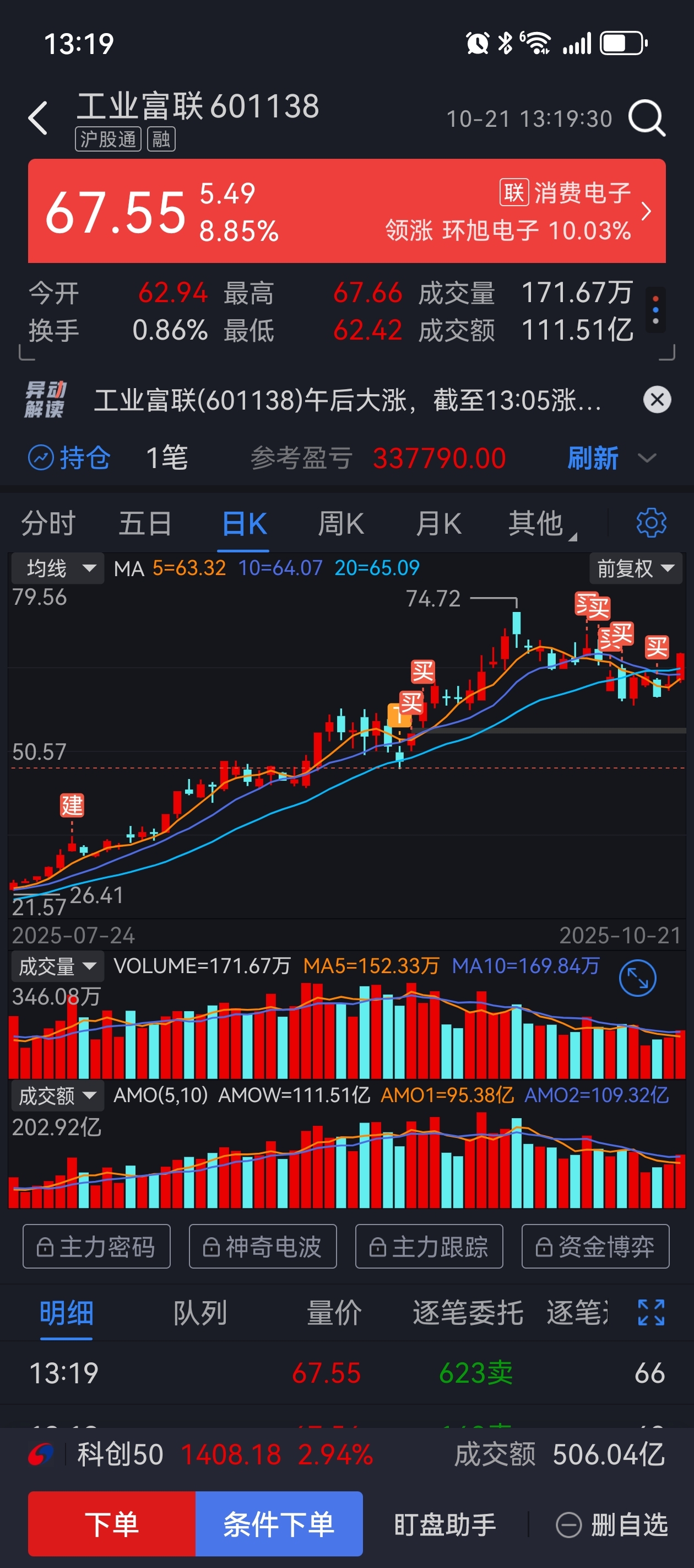 国庆后的5个交易日我都不停加仓、国庆后第一个交易日拿了67的筹码、后面也拿了60