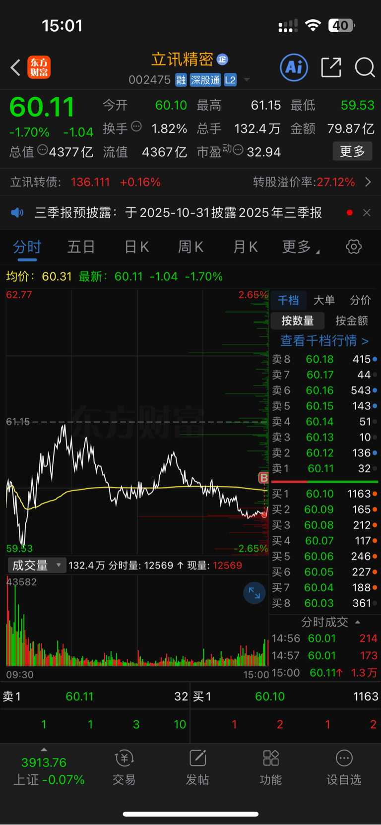 $工业富联(SH601138)$ $立讯精密(SZ002475)$ $上海电力(SH600021)$ 尾盘模式:尾盘二点五十以后进,第二天冲高或高开一个点以上就走!把T+1做成T+0!每天稳定盈利一个点,一年复利下来十几倍!慢就是快!欢迎验证我的实盘组合!