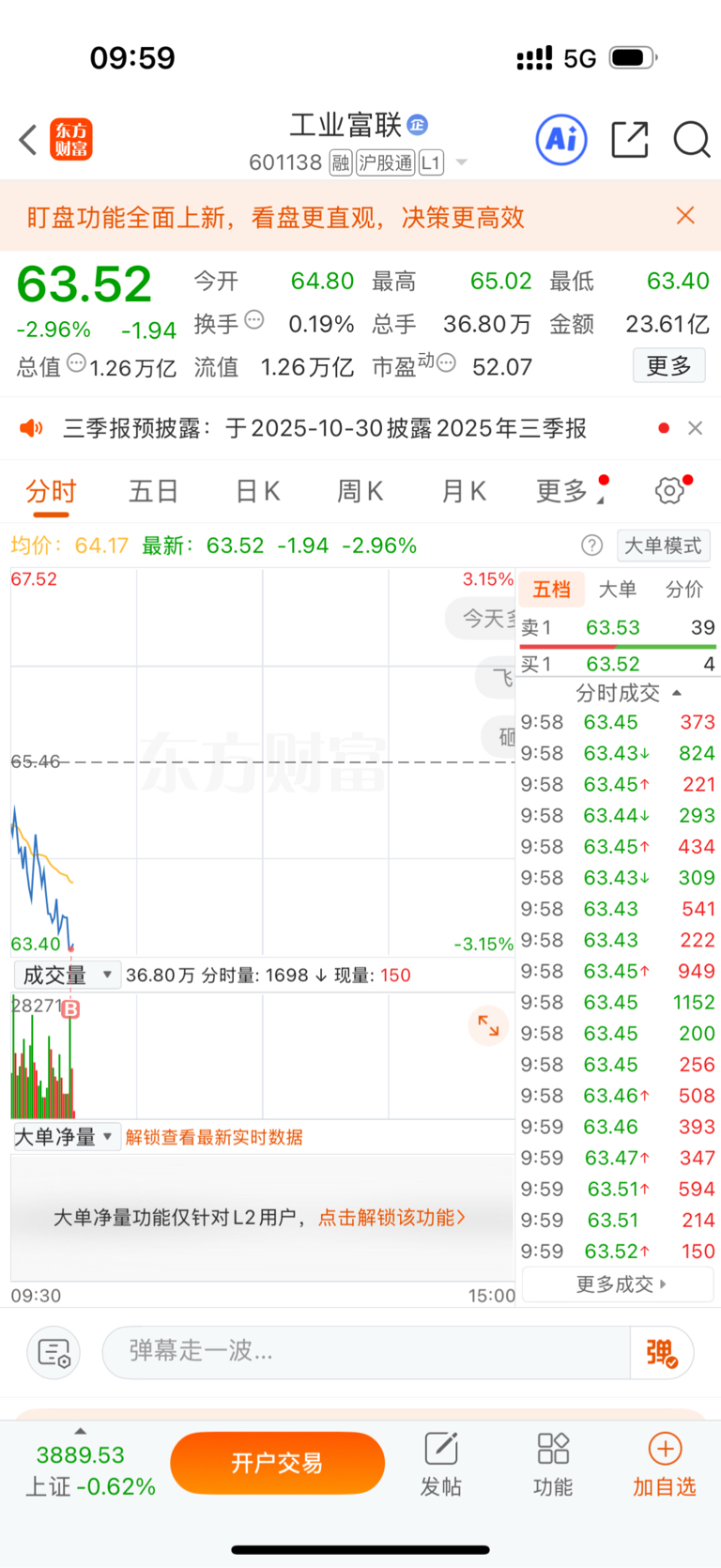 63.16选择介入$工业富联(SH601138)$ 希望下午能反抽#强势机会# #实盘记录# #投资干货# #投资随笔#
