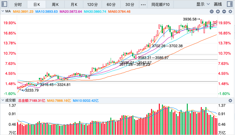 昨天上证指数出现了探底回升的走势,来到了历史新高附近的位置,成交量继续出现萎缩,在本周里面已经4个交易日成交量不足两万亿了,所以今天是否能够形成不良行情,将代表这一轮的上涨能否有普涨行情的关键。其次则是目前在整一个情绪面出现分化的情况之下,短线上来看,将会有较好的预期,低位板块将继续延续延续性,因为高低切的状态之下,介入程度相对较深,所以短线上来讲。短期风险偏好的提升并不会改变目前低位的红利行情。