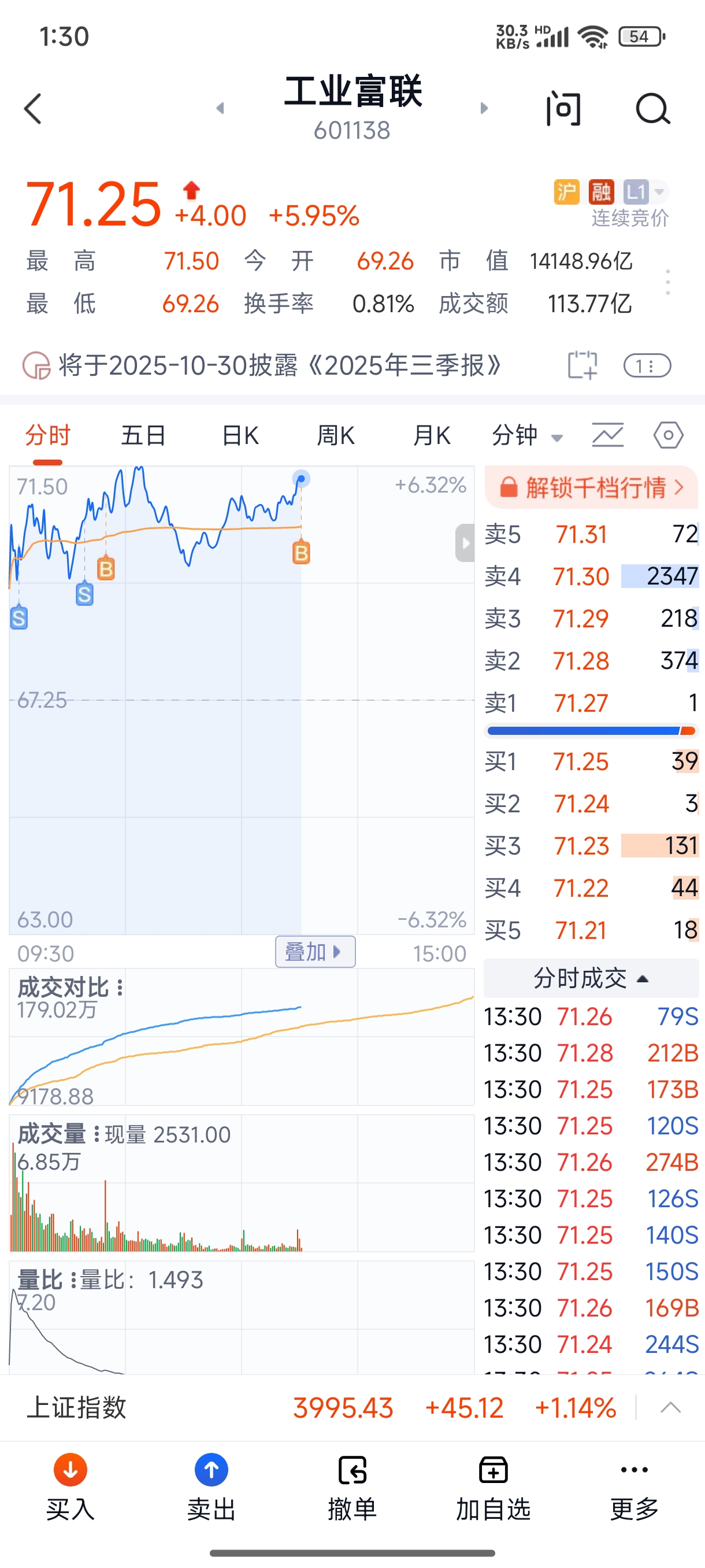 $工业富联(SH601138)$ 下午可能会涨停,所以我出去又回来了