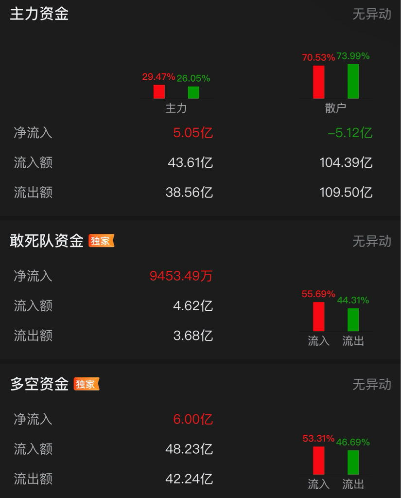 今日资金流入。