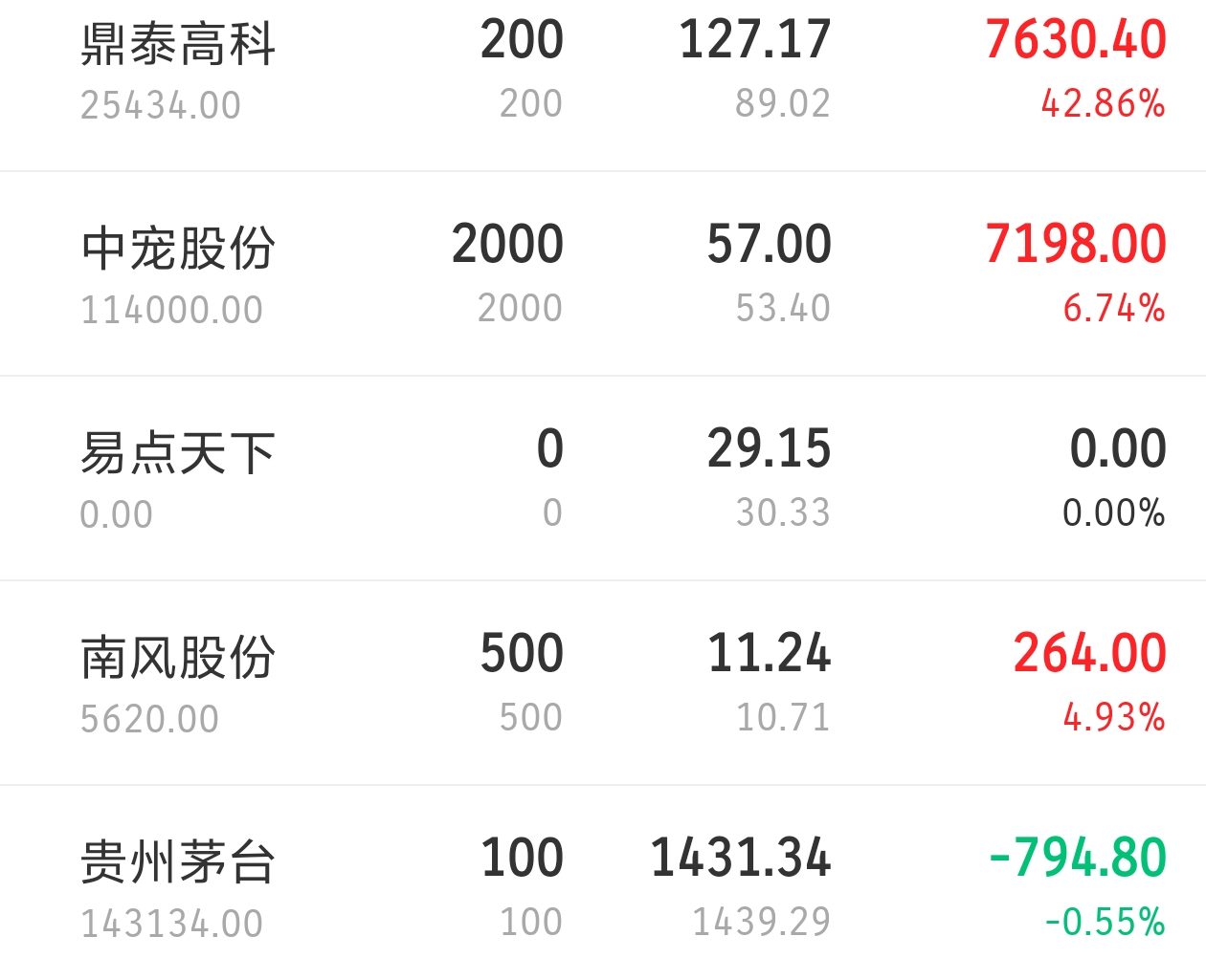 -中宠股份的持仓市值最高(11.4万元),同时浮动盈利金额居前(7198元),且涨跌幅达6.74%,是该组合中涨幅最大的标的; 贵州茅台持仓市值最高(14.31万元),但因价格微跌出现小幅浮亏#股市怎么看# #投资干货# #投资随笔# #收盘点评# #实盘记录# $工业富联(SH601138)$ $平潭发展(SZ000592)$ $三花智控(SZ002050)$
