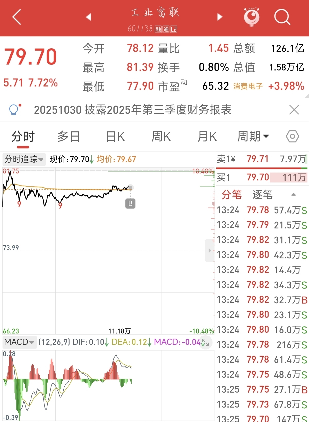 $工业富联(SH601138)$ 一买就跌,买的时候还是79.85,刚下手就变成79.7