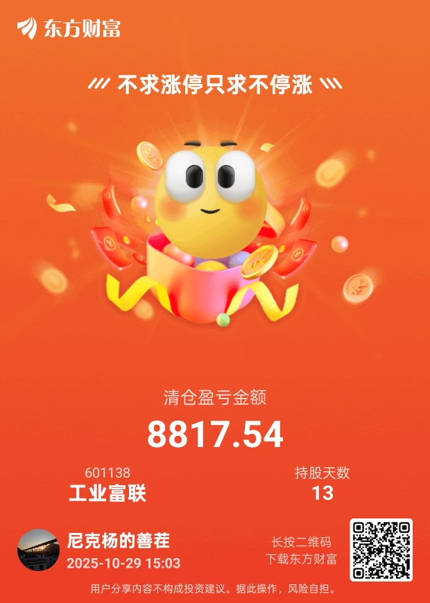 $工业富联(SH601138)$ 还是拿不住了,向各位大佬学习,一直关注找机会再接回