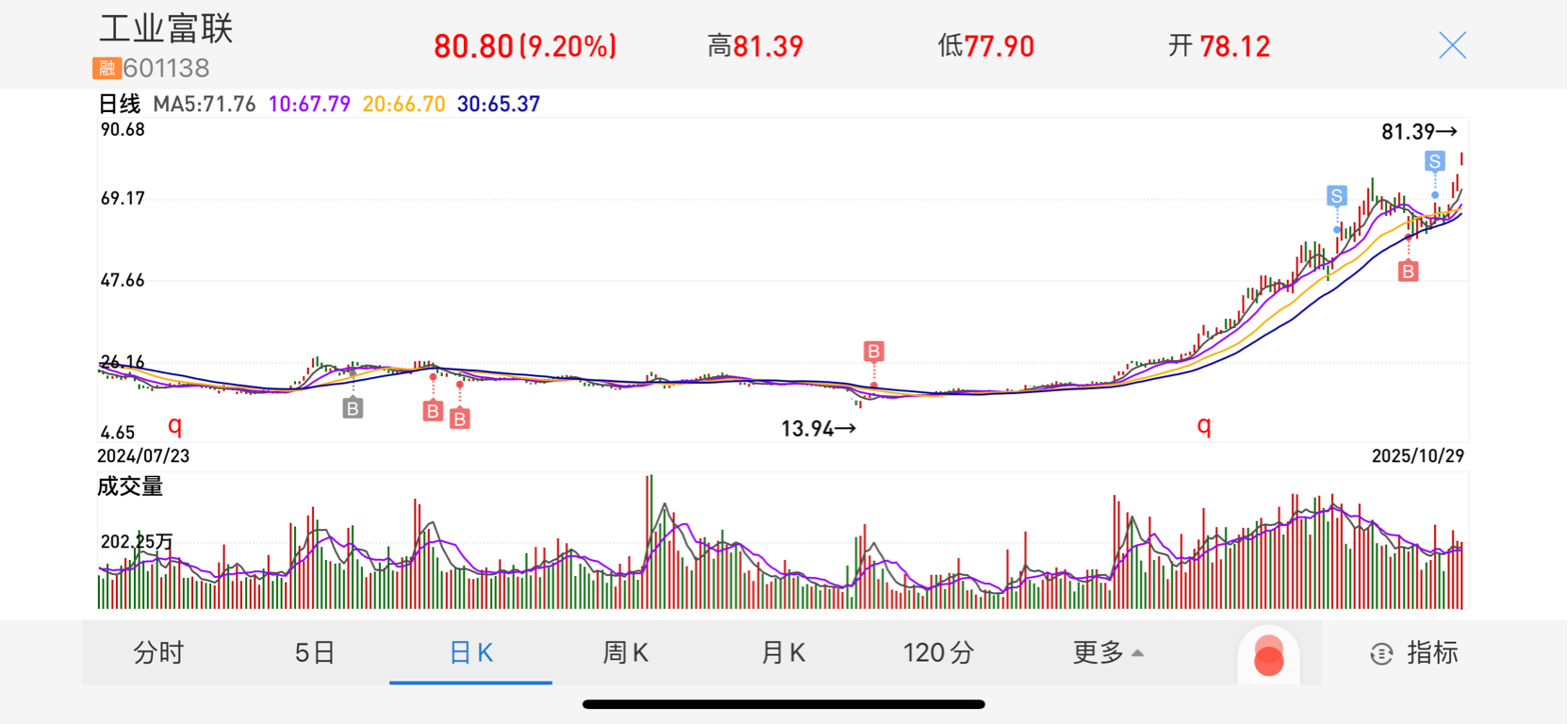 $工业富联(SH601138)$ 目前成本价-65,半仓继续持有
