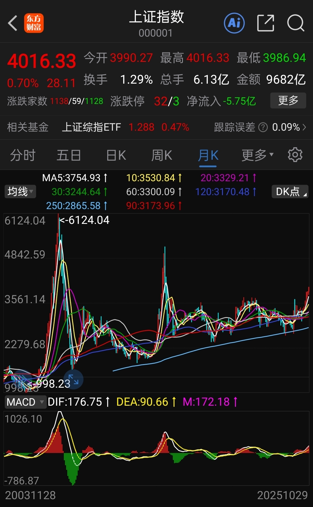 A股历史上三次突破4000点,第一次牛市2008年突破4000点后,上涨到6124点,第二次牛市2015年突破4000点后,上涨到5178点,第三次牛市2025年突破4000点后,历史还会重复吗?4000点是牛市的起点吗?让我们拭目以待!跟着牛市吃肉!躺着把钱赚了。