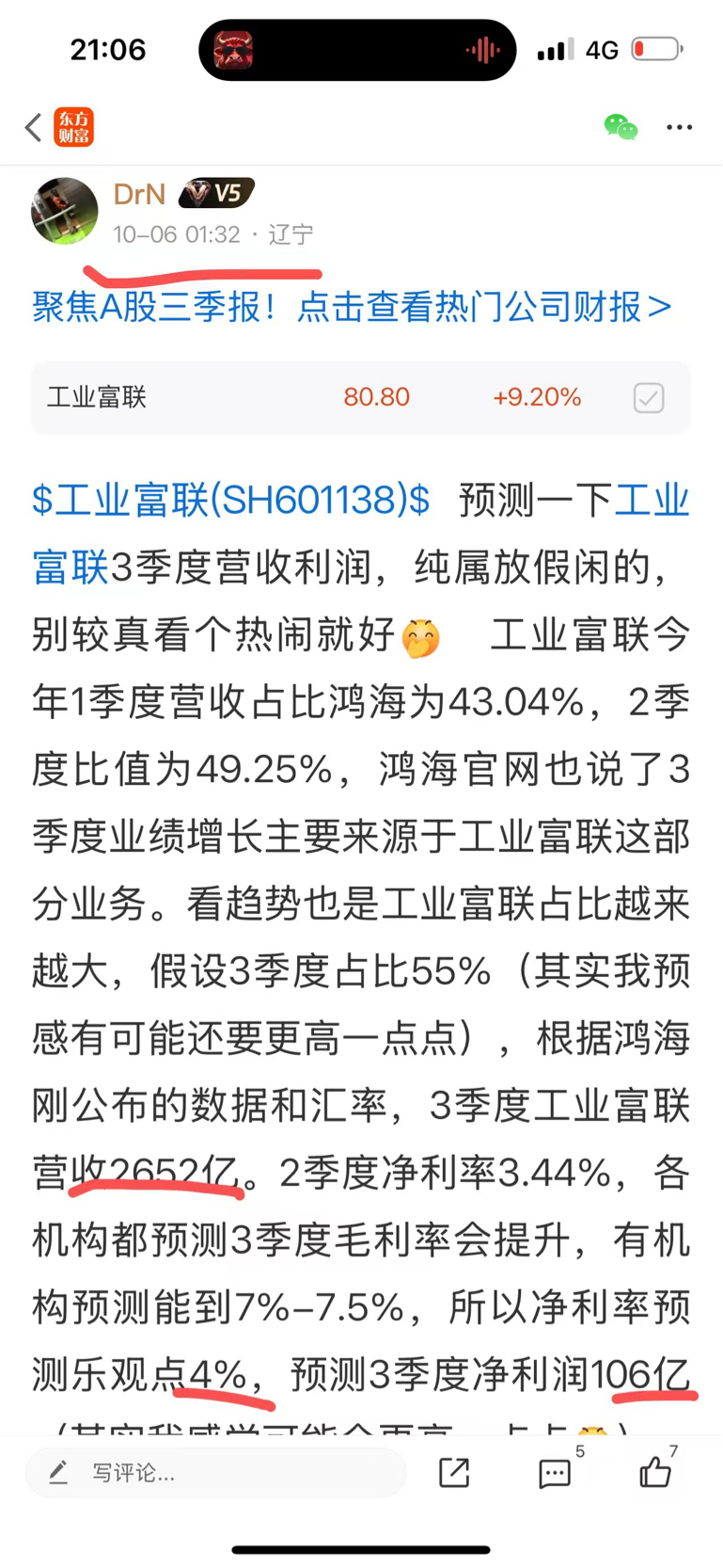 关于富联3季度业绩预测,全网竟然没看到比我预测更准的,我一个业余爱好者,三甲医院