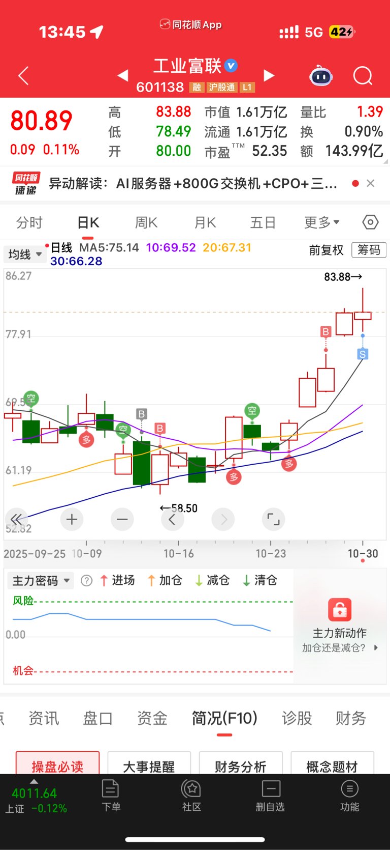 $工业富联(SH601138)$ 我先撤了,住留下的的兄弟们发财
