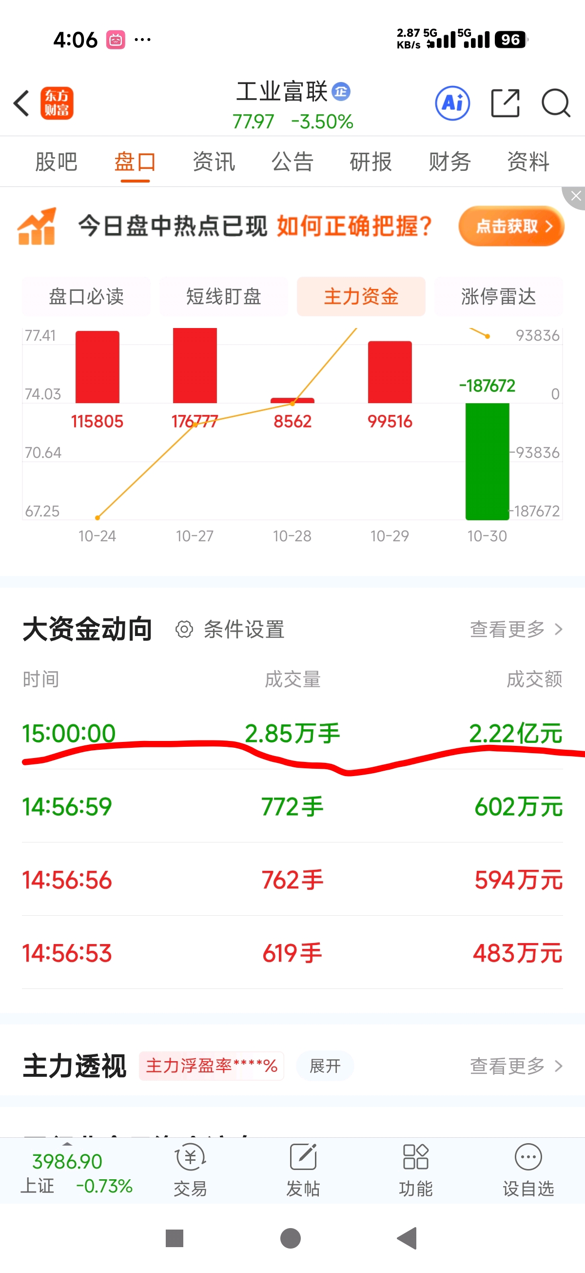 $工业富联(SH601138)$ 有个万手哥在抛了2.2亿。。明天会不会崩
