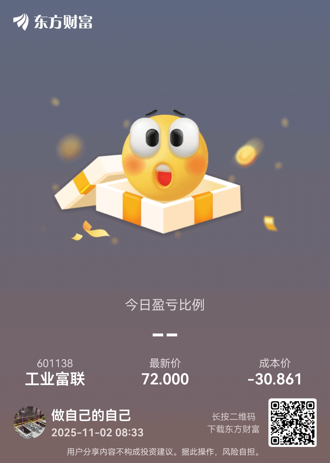 温馨提示: 1.根据《证券法》规定,禁止编造、传播虚假信息或者误导性信息,扰乱证券市场;2.用户在本社区发表的所有资料、言论等仅代表个人观点,与本网站立场无关,不对您构成任何投资建议。用户应基于自己的独立判断,自行决定证券投资并承担相应风险。《东方财富社区管理规定》