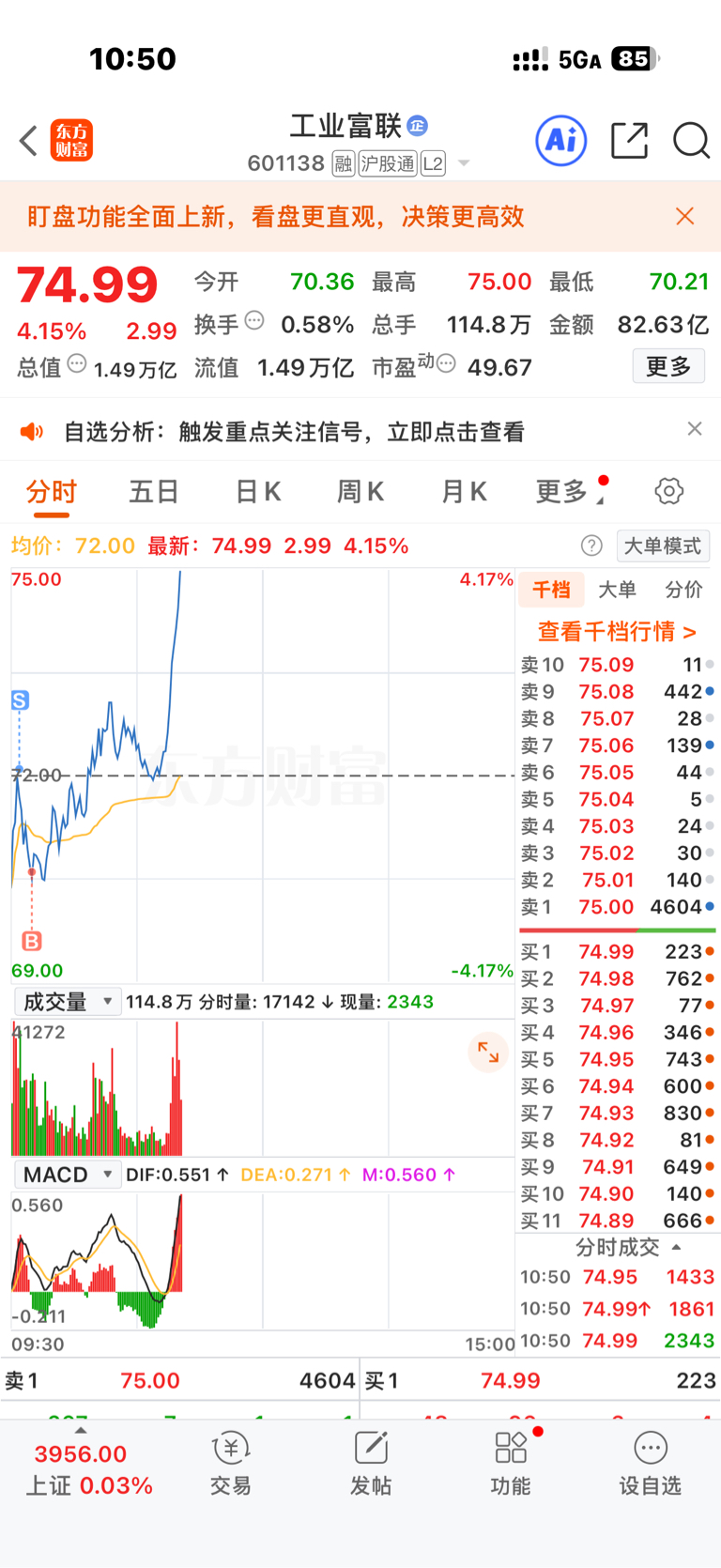 你可以永远相信工业富联,早盘多空激烈交战、明显有承接,毫不犹豫买回来,T了2个点