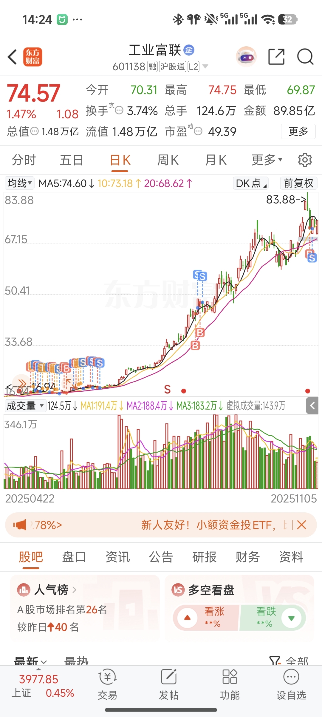 $工业富联(SH601138)$ 这个价格以后估计不会再买了