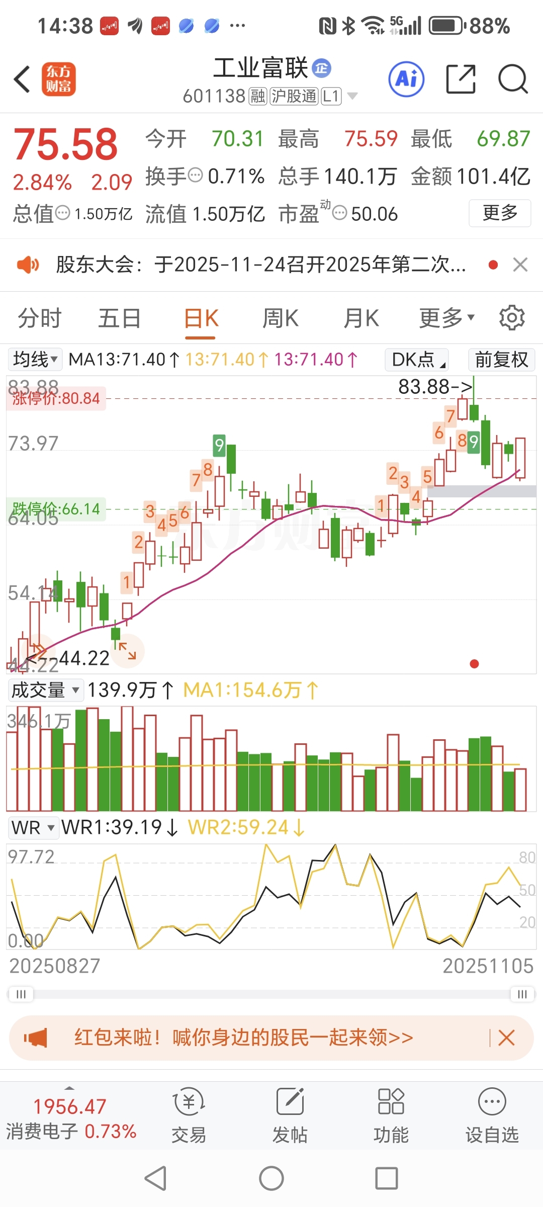 $工业富联(SH601138)$ 涨势惊人!两阳夹一阴明天继续有溢价!